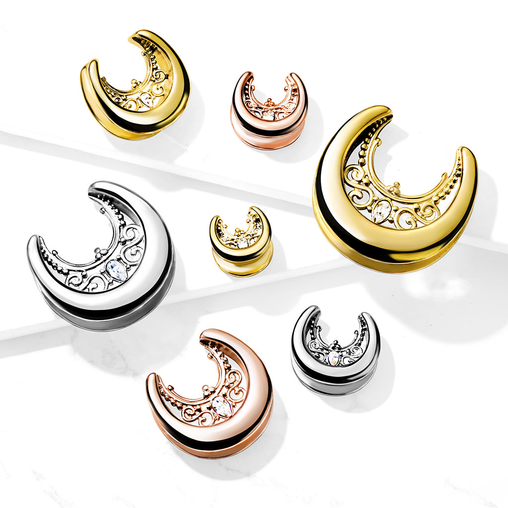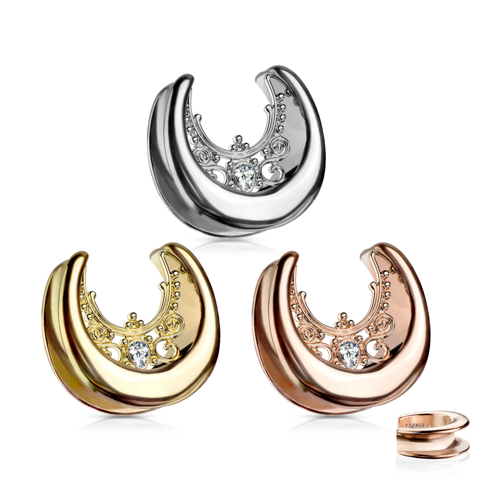 Smyckena kan köpas i flera olika storlekar och i flera olika färger. Du måste ha minst 10 mm. hål i örat för att kunna använda den minsta storleken. Men det spelar ingen roll om ditt hål är större än den största storlek vi har. För smycken med sina nedåtgående kanter har ett bra grepp om örat. Så även om ditt hål är större fylls smycken helt enkelt i öronens nedre del och lämnar resten öppen uppåt.