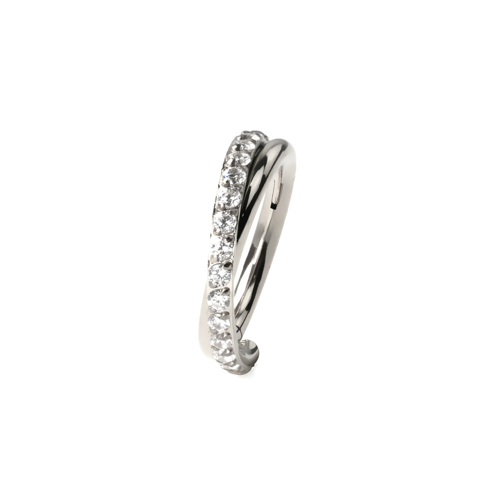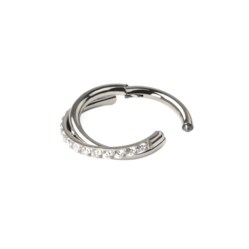 Ringens stenlagda crossover-design är perfekt för att lägga till elegant glitter till dina öronpiercingar, till exempel helix, daith, rook och till och med örsnibbar.