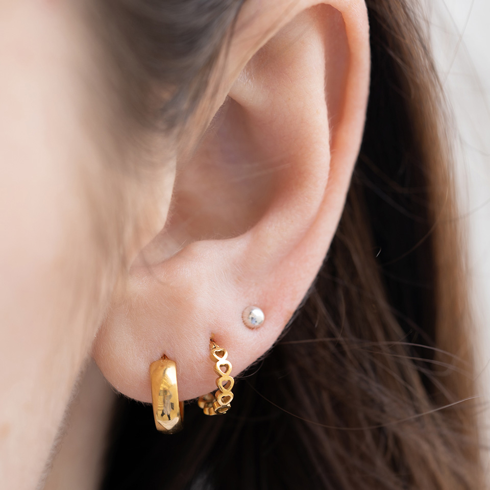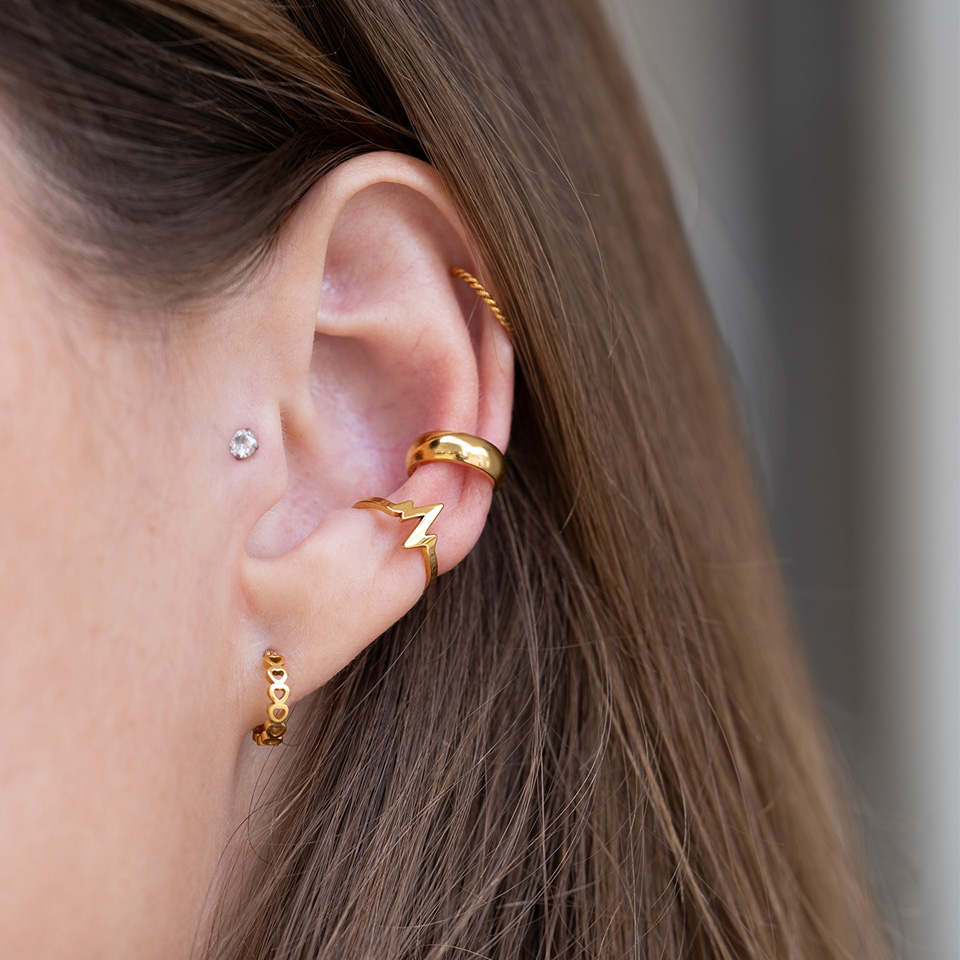 Placering: Tragus, Septum, Rook, Örsnibb, Helix, Forward helix