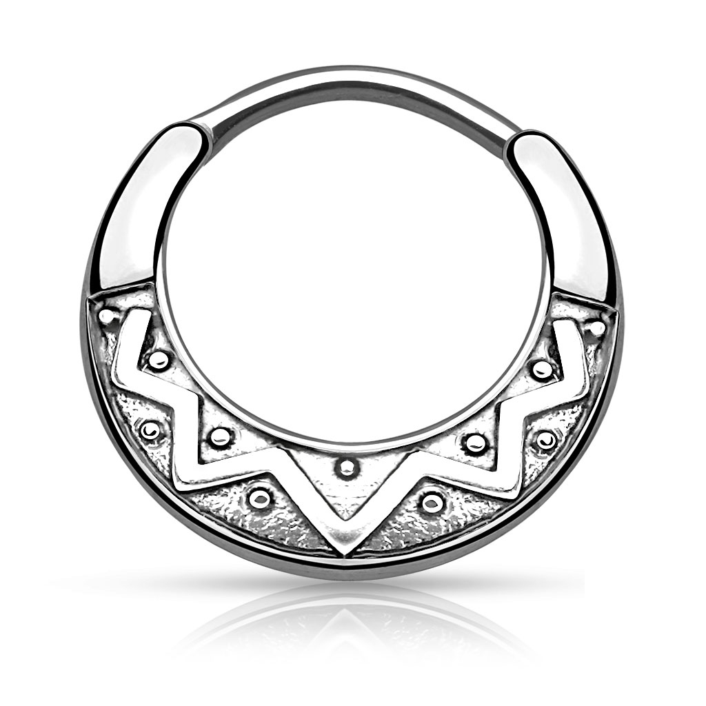 Är det unika och speciella smycken som du gillar så har du här hittat ett riktigt snyggt och läckert smycke till din septumpiercing. Det här smycket är en septumclicker där den lilla staven som öppnar och låser smycket bara klickas upp eller i när du ska ha din septumpiercing. Staven är samtidigt också den delen av smycket som går igenom själva piercingen i näsan.