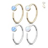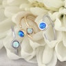 På ringen sitter en liten inhängd 2,5 mm stor opalsten. Det handlar om en syntetisk opal. I linje med materialvalet, väljer du också här om du vill ha en vit opal eller en blå opal. Den vita opalen har nyanser som går från röd, gul och över i grön, men helheten i stenen kommer se vit ut. Den blå håller sig till blåa nyanser, som ljusblå, turkos och mörkblå.