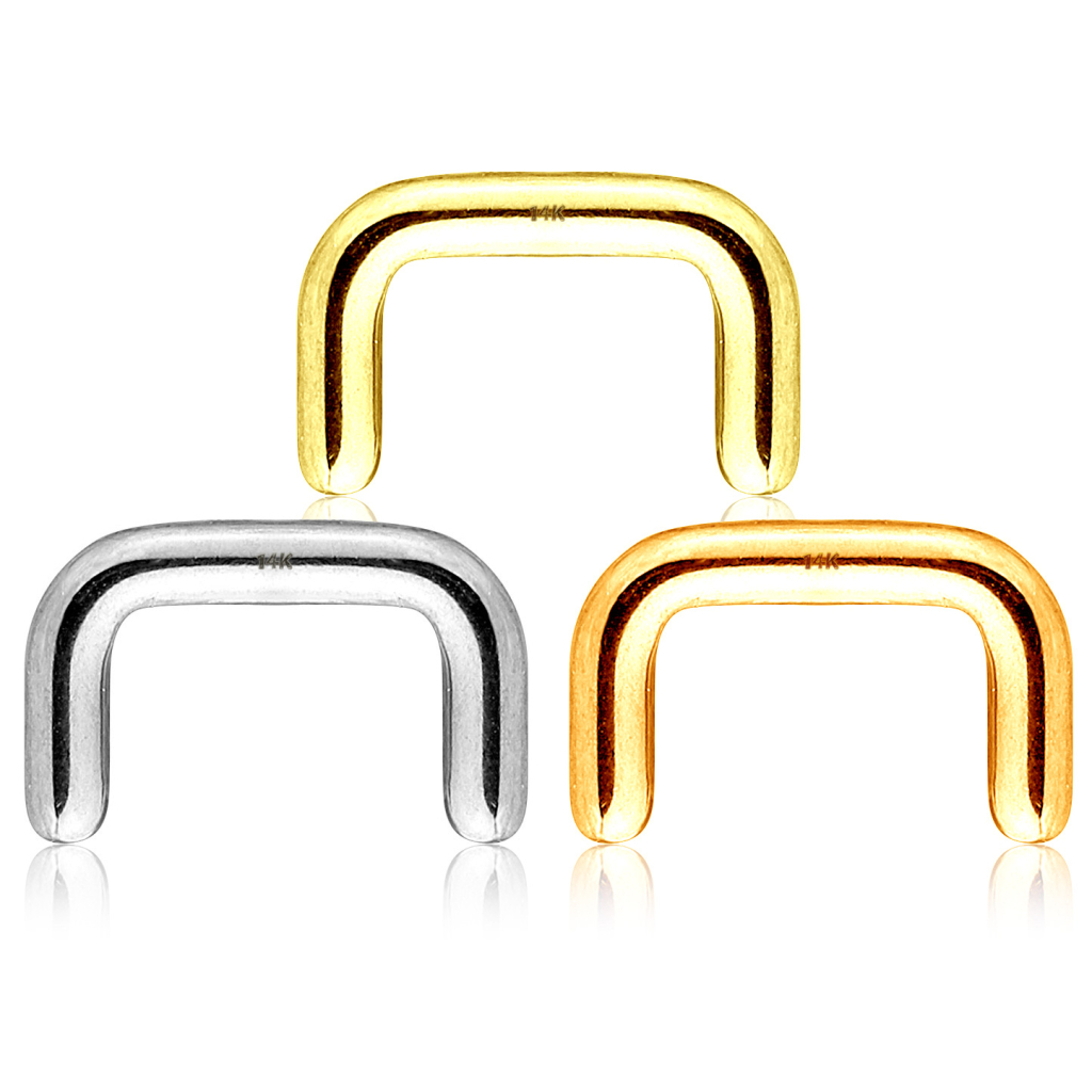 Här kommer ett annat guldkorn – smycket är faktiskt gjort av 14 karat guld. Du kan välja mellan flera utgåvor av detta smycke, som alla är gjorda av 14 karat guld. Du kan som exempel få smycket i en 14 karat vitt guldutgåva. Sedan det också kan variera i trådstorlekar på septum piercingar, kan du också välja mellan flera trådstorlekar på smycket – bland annat 1,2 mm och 1,6 mm.