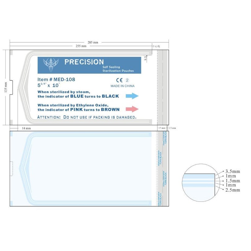 - Förseglingsstrippen är en indikator för att miljön inne i påsen är sterilt.