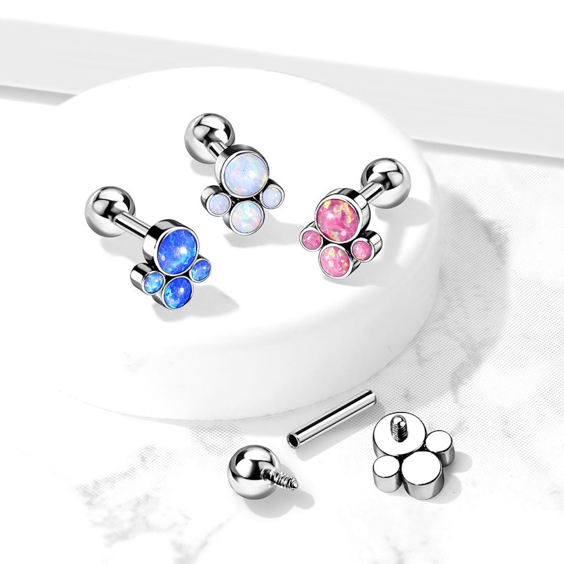 Smycket är dekorerat med invändig gänga - ett på varje ände av staven. Det skonar dig från att få rivsår inne i din piercing när du sätter i det. Då du både kan skruva av både framsidan och låskulan kan du också sätta i en annan låskula om du tycker att den medföljande 4 mm kulan är lite för stor. Du kan såklart också ta över framsidan och sätter över på en annan stav. Endast måtten behöver stämma.