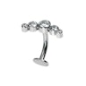 Denna svävande navelpiercing pryds av fem bezelfattade kristaller. Eftersom det är tillverkat av titan är det både allergivänligt och vattentätt. Smycket låses med en push-in teknik, vilket betyder att för att fästa den i din piercing behöver du bara böja stiftet lite och trycka in den i staven.