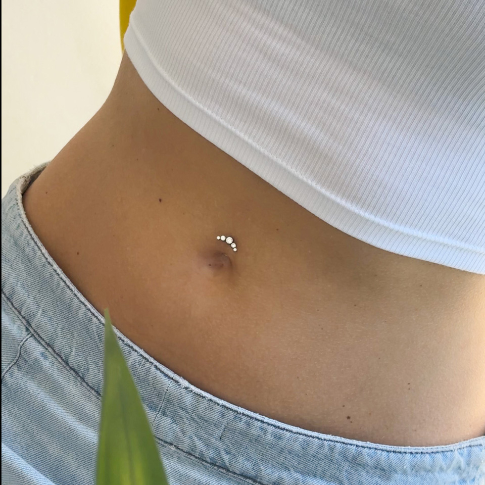 Svävande navelpiercing i titan med kristaller
