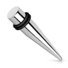 Letar du efter en taper i en stilren design? Då kan vi här visa dig en taper i blank kirurgiskt stål med en dubbel svart o-ring i toppen.