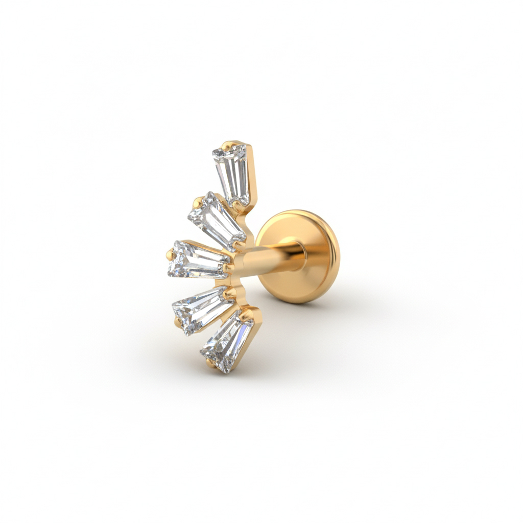 Tillgänglig i färgerna guld eller silver och är en labret som passar conch, helix eller öronsnibben, oavsett om det handlar om en kväll på galleriet, en elegant arbetslook, eller bara en snygg detalj som knyter ihop säcken.