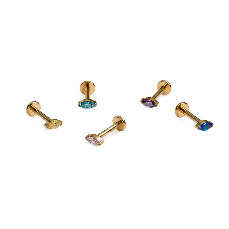Den marquise-slipade stenen adderar en förfinad detalj som funkar med vilken ear stack som helst. Tillverkad i ASTM F136 titan, vilket gör den allergivänlig, vattentät och med rädd omsorg kan den hålla en livstid. Den invändiga gängan håller den irritationsfri och säkert på plats, så när den väl är i behöver du inte oroa dig.