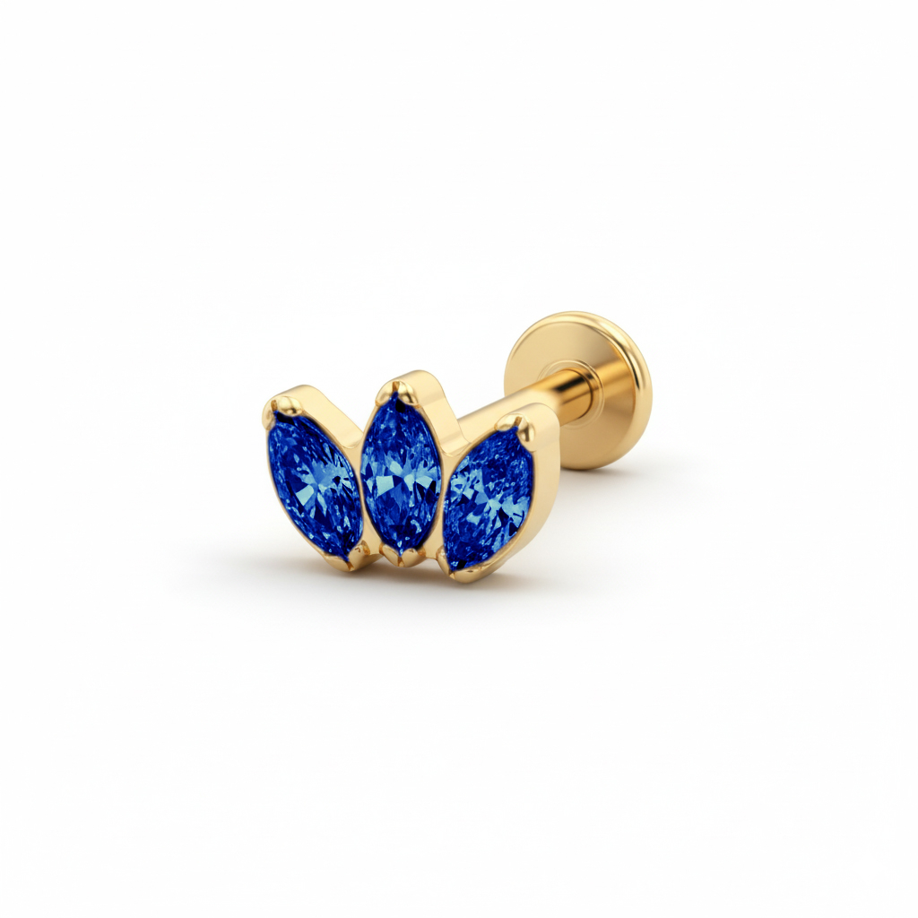 Denna titanlabret med trio av stenar i valfri färg bevisar att små detaljer kan ändra hela din look. Tre klofattade stenar sitter tillsammans som en krona och ger en touch av struktur till dina öronpiercingar.