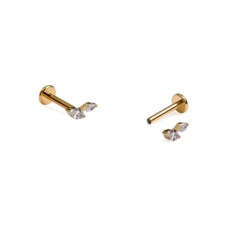 Denna titanlabret med två marquise-slipade stenar är bevis att mindre kan göra mer. De avlånga tvillingstenarna sitter tillsammans som snygga löv eller vingar, och ger ditt öra precis det rätta lyftet utan att stjäla hela showen.