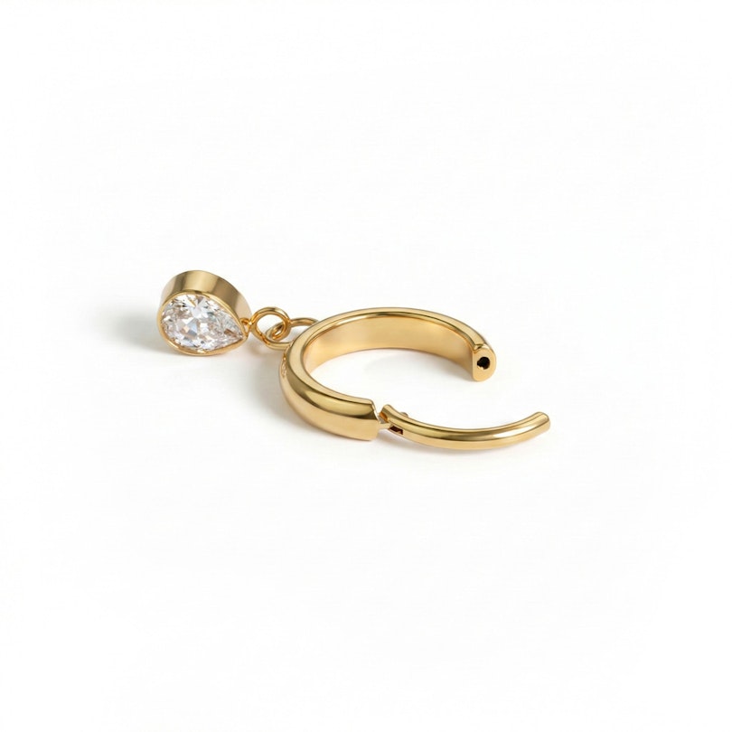 Ringen pryds även av ett hänge format som en droppe med en infattad CZ-sten, vilket sitter fast på ringen i två mindre ringar. Droppen mäter 4,5 mm.