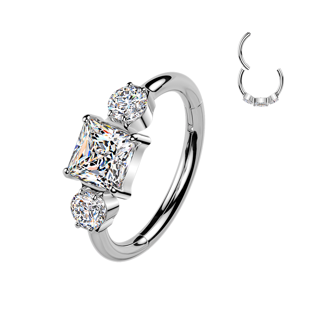 Tre stenar, en stor flex. Denna Bodymod Premium ritanring med tre CZ-stenar ger din piercing precis rätt glans. Tillräckligt subtil för vardagar, glittrig nog för att dra blickar till sig.
