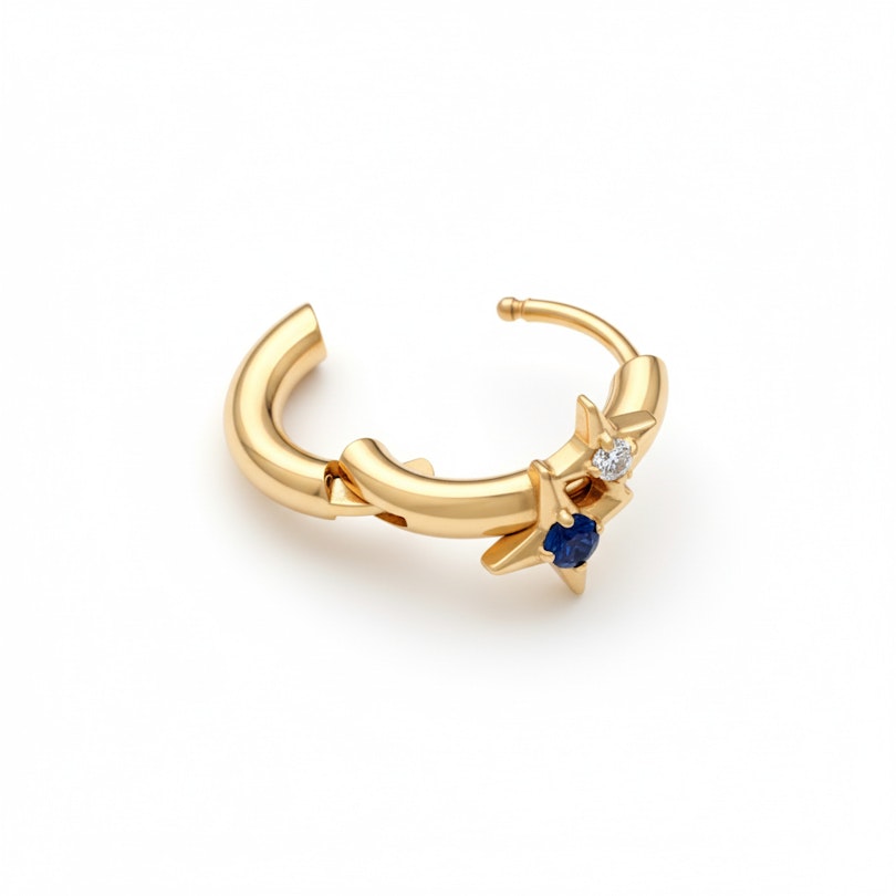Denna titanring med två stjärnor ger en lekfull twist på en klassisk form. Två små stjärndetaljer sitter sida vid sida, vardera infattad med en färgad sten i en prydlig klofattning, vilket ger ringen precis lagom med karaktär utan att bli för mycket. Finns i färgerna guld och silver, lätt att mixa in i din samling.