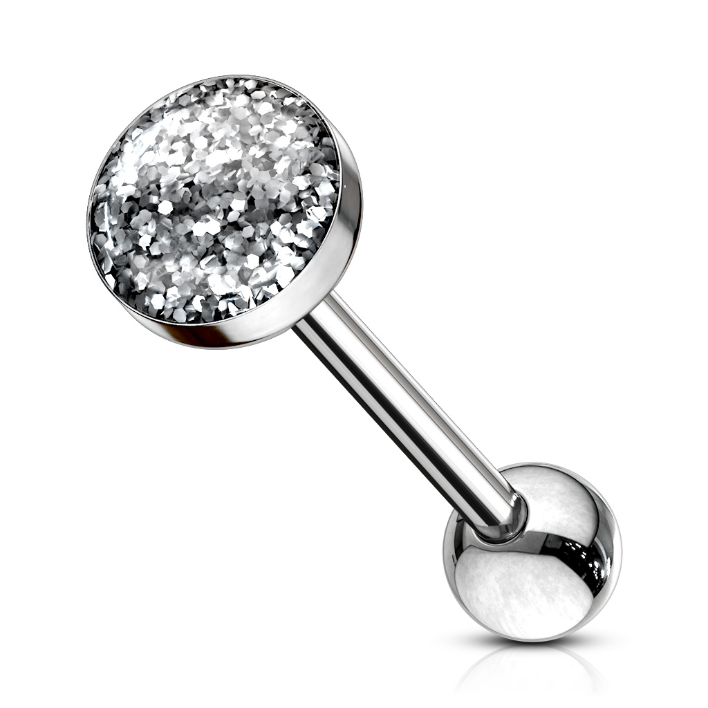 Det finns hela 7 snygga klara färger att välja mellan, som består av flera färgade glitterflingor som är samlade under en kupol av klar plast. Eftersom det handlar om glitterflingor så kommer denna snygga tungringen att glittra och glimta när du talar eller öppnar munnen och ljuset hittar sin väg in.