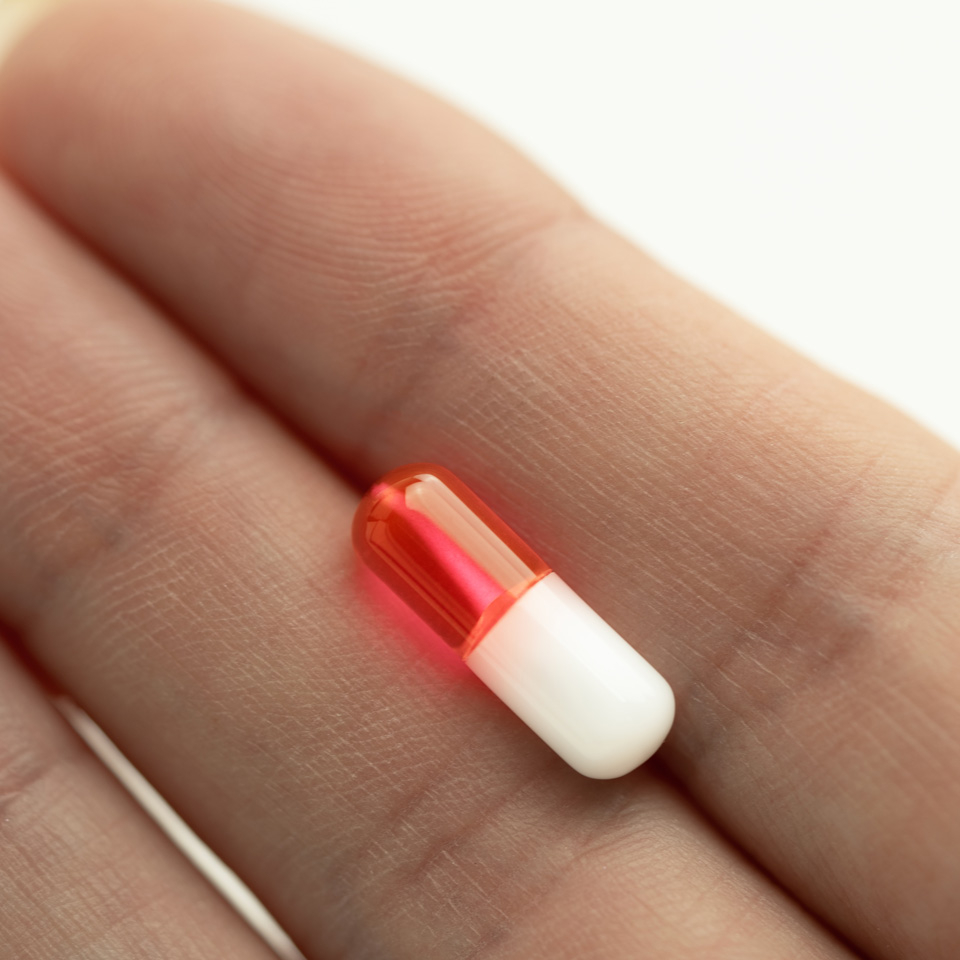 Storleken på kapsylen är inspirerade av riktiga kapsyler 16 mm i längd och 5 mm i tjocklek. Men den har lite att göra med riktig medicin. Denna unika tablett finns i sju olika färger. Ena halvan är alltid vit medan du kan välja den andra halvan i vilken färg du vill.