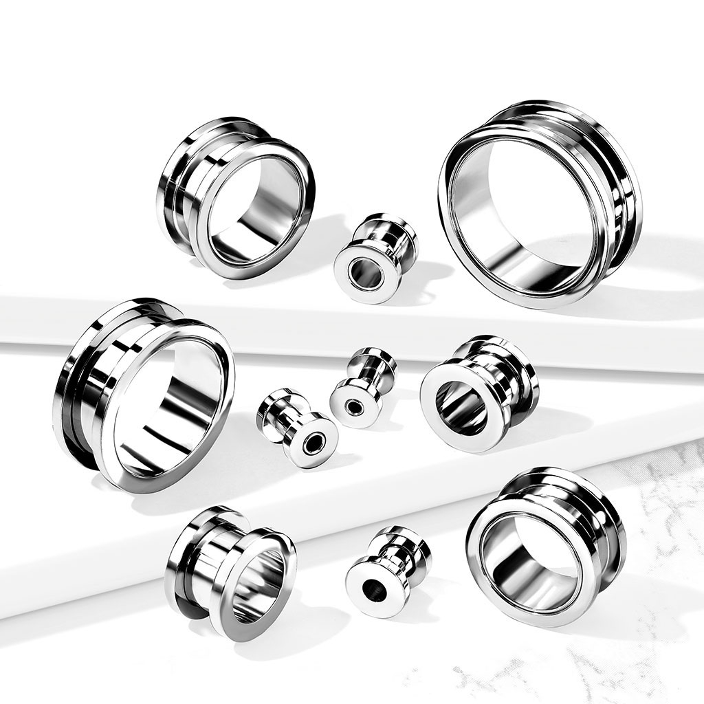 Tunneln kommer, som namnet antyder, med en skruvgänga. Det betyder att baksidan av smycket kan skruvas av så att du lättare kan sätta in och ta ut det i örat. Smycket kan väljas i storlekar från 3 mm till 25 mm.