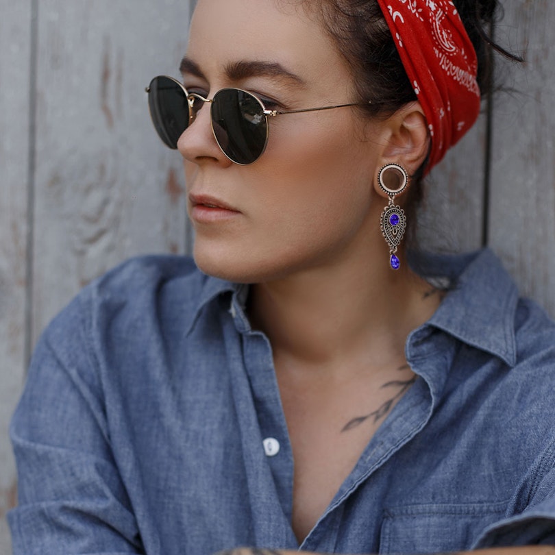 Denna tunnel kan du använda om du har ett hål i örat som är mellan 6 och 16 mm. Båda storlekarna inklusiv tunneln är gjord av kirurgiskt stål och har på framsidan en pärlring av mässing. Hänget är gjord av mässing.