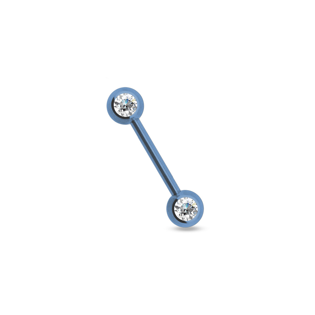 Smycket är utrustad med en stor snygg 6 mm. låskula i varje ände. Det är inte kulor som är menade att vara diskreta, nej dessa snygga kulor är födda till uppmärksamhet. Utöver att vara färgad i samma nyans som själva staven är de nämligen också bägge utrustade med en skinande vacker klar sten. Stenarna är cirkelrundade och har form som en diamant så de glittrar och glimtar mest möjligt när ljuset faller på dem.