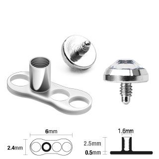 Här får du 25 dermal achors i ett set. 25 baser av rent titan och 25 toppar av kirurgiskt stål med klar sten. Du väljer själv om dina toppar ska vara 3, 4 eller 5 mm. i diameter.