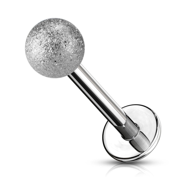 I den motsatta änden av den fasta plattan sitter själva kulan på smycket. Kulan är gjord av kirurgiskt stål, vilket har en ojämn yta på grund av att det har sandblästrats för att ge kulan sitt speciella utseende. Denna slags teknik gör att det ser ut som att små, glittrande diamanter har strötts över kulan. Det får kulan att glittra och glimta när ljuset träffar den.