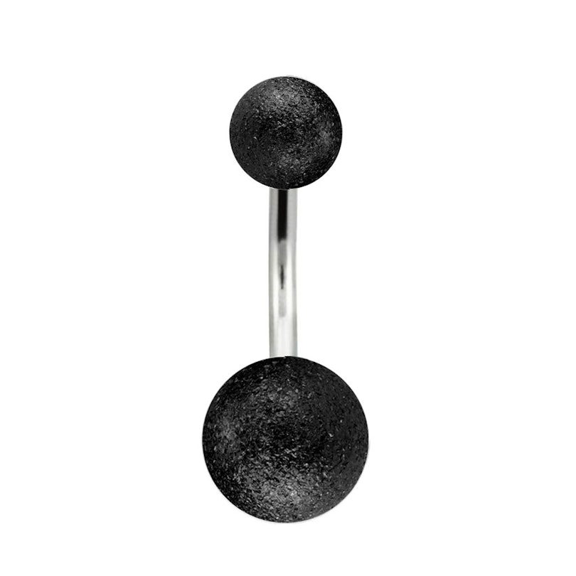 Denna navelpiercing glittrar och gnistrar när ljuset träffar de vackra kulorna. Kulorna är tillverkade av kirurgiskt stål. Stålets yta är grov och ser lite ut som att det har blivit hamrat. Hemligheten är dock att kulorna har sandblästras, vilket innebär att små sandpartiklar har blåsts med mycket kraft på kulorna. Det resulterar i en ojämn yta. Det ger en effekt som närmast kan liknas med diamanter som glittrar i ljusets sken.