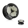 Om du letar efter en läskig rolig plugg till din töjning, så har du hittat rätt. Lite längre upp på sidan hittar du en plugg som är gjort av akryl och har fått tre dödskallar lagda i sig. Dessa tre skallar ligger i en cirkel med ansiktet upp mot framsidan av smycket. Sedan har det lagts en genomskinlig yta över de tre skallarna för att de inte ska trilla ut, och självklart för att ge pluggen en snygg finish.